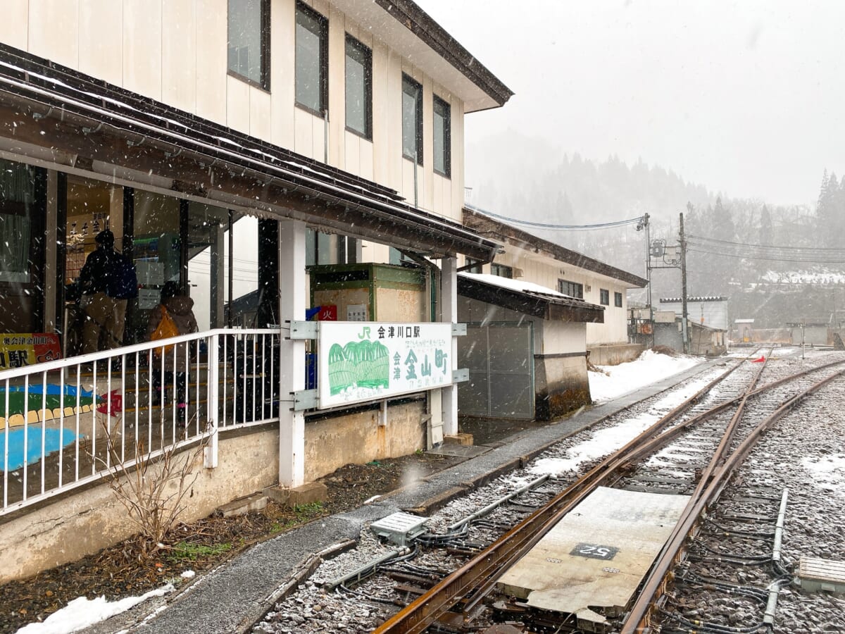 JR只見線は、この川口駅から只見駅の間が不通で只見へ行くにもここからバスに乗り換えします。雪まつりのバスも到着していました。