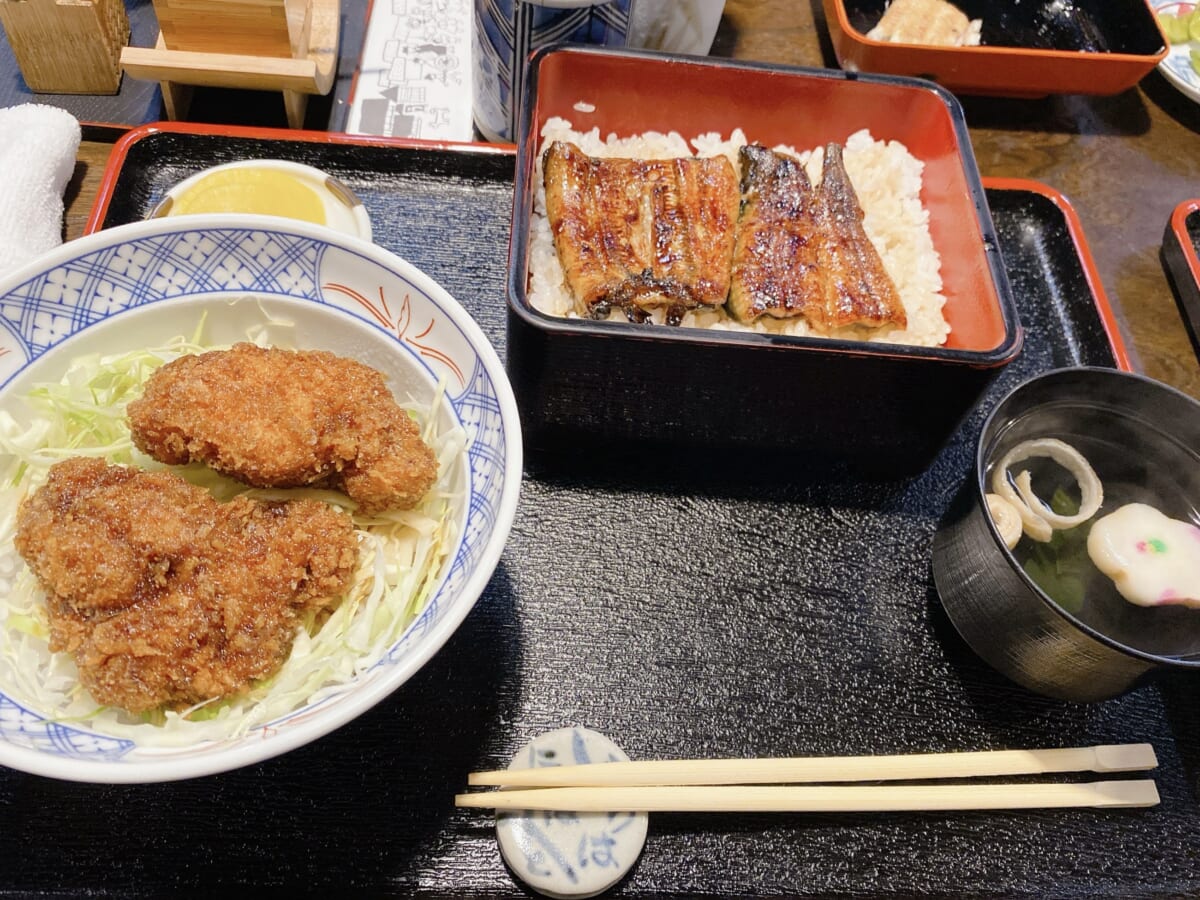 うな重とソースカツ丼のセットになります。ソースカツはひれでした。ロースの方が肉の味がすると思っていましたが、こちらのヒレカツは肉が味わえる美味しいヒレカツになっていました。