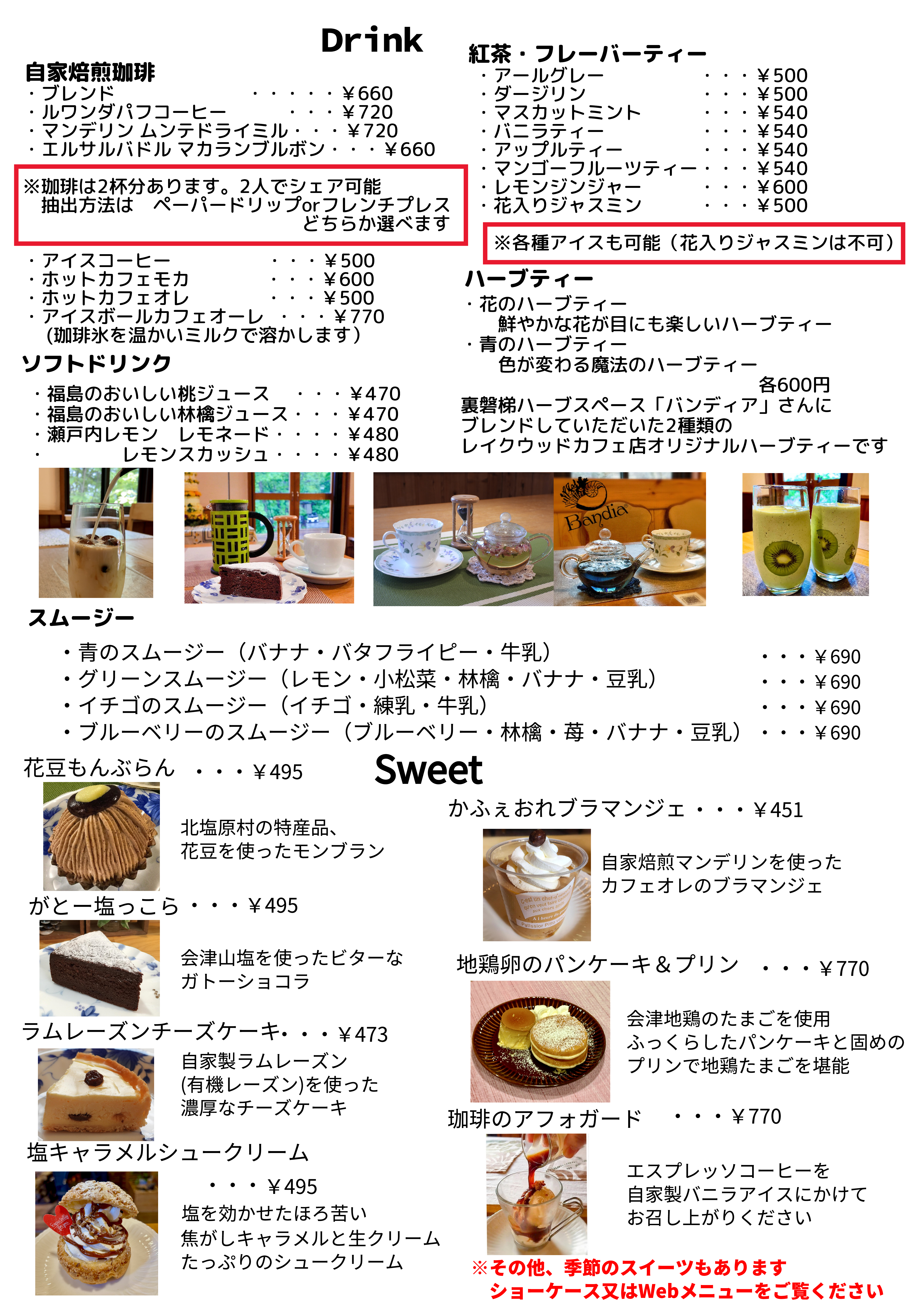 名称:ヒロのお菓子屋さんレイクウッドカフェ店所在地:〒969-2701 福島県耶麻郡北塩原村檜原曽原山1095−47