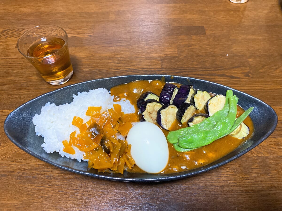 カレーに野菜の素揚げって、野菜を食べてしまいたい時に便利だと気づいた。