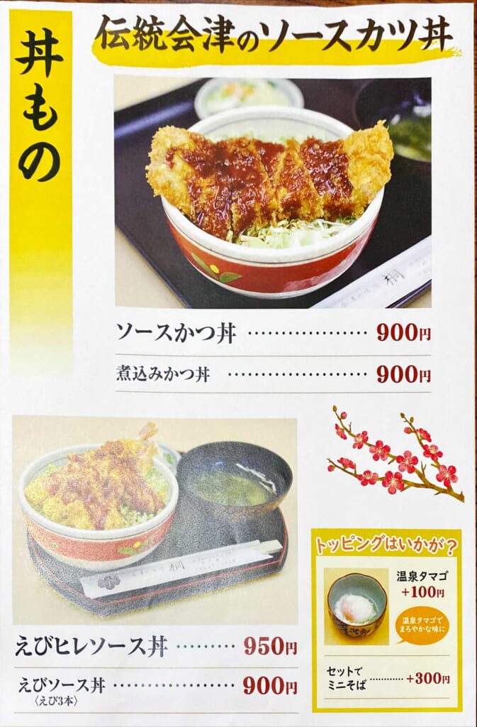 メニューに「会津のソースカツ丼」とあったのでそのまま使用しましたが、何が「会津」なのかは不明です。ただ、修学旅行などでも使われる店なので、ご当地名物としての紹介なのかもしれません。