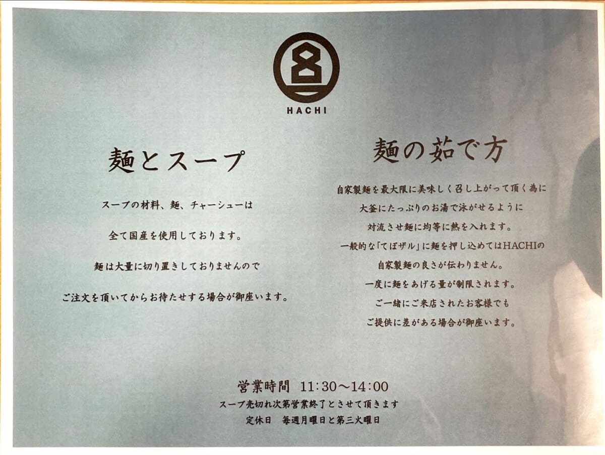 朗報です、HACHI(はち) のラーメンが食べられます。